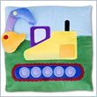 - Colorful illustration of a construction crane with 3D embroidered embellishments